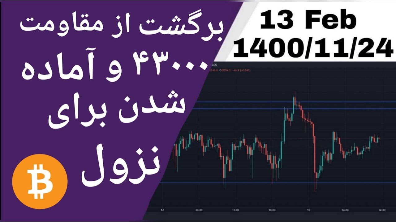 تحلیل بیت کوین امروز : در آستانه ریزشی دیگر تا محدوده حمایت بعدی ۴۰۵۰۰ تا ۴۱۰۰۰